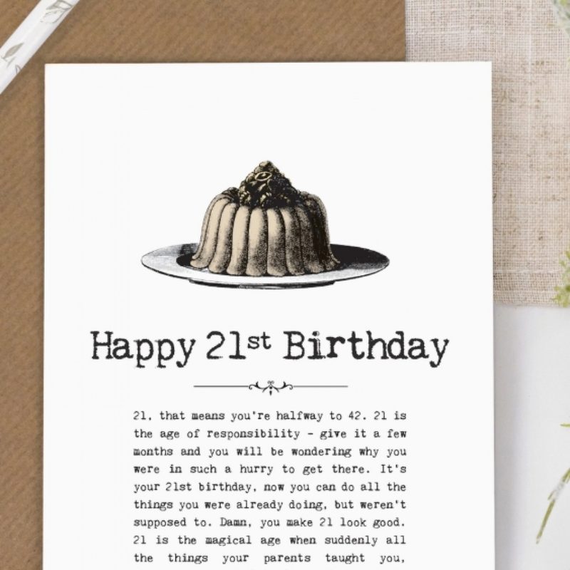 21st Birthday Card with Vintage Cake Illustration