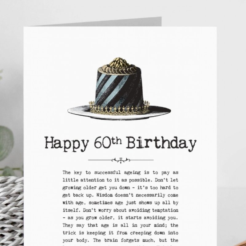60th Birthday Card with Vintage Cake Illustration