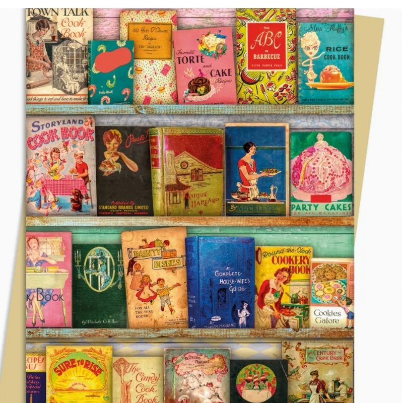 This card by Flame Tree Publishing Features 'Vintage Cook Book Library" by Aimee Stewart