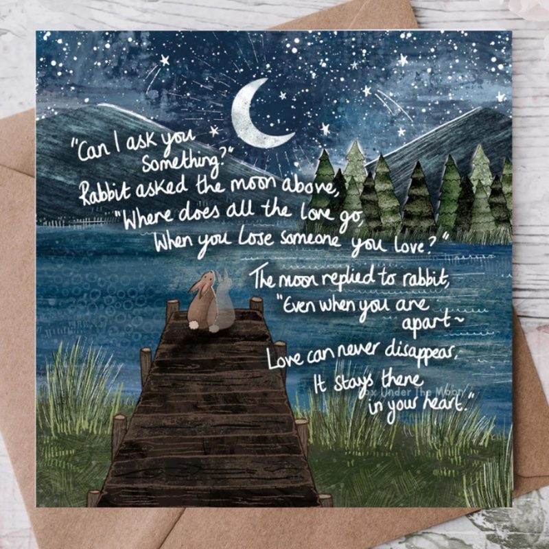 The moon replied to rabbit, “Even when you are apart – love can never disappear, it stays there in your heart.”