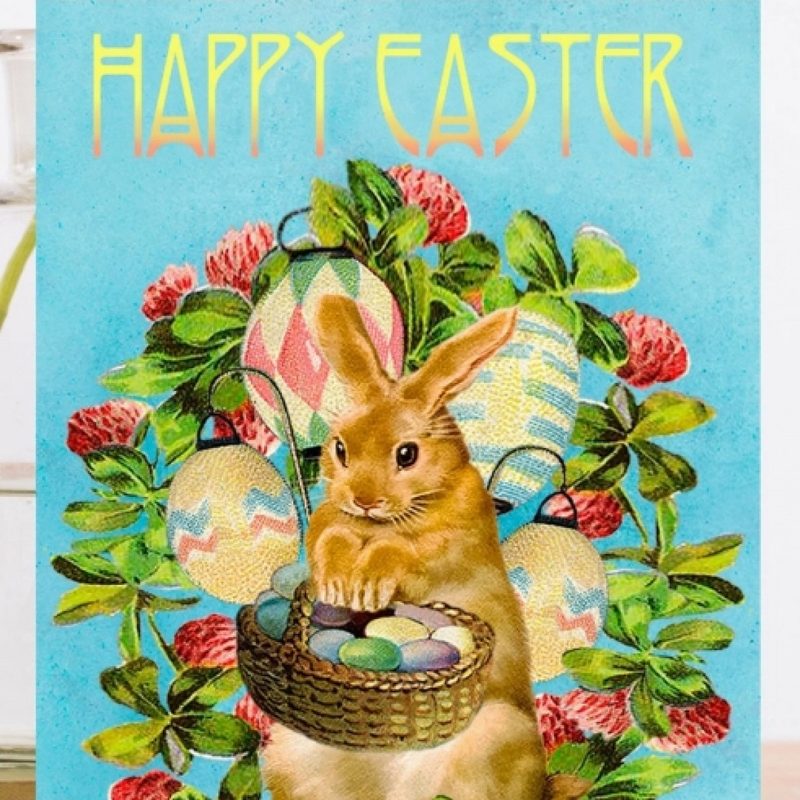 Bunny with basket of eggs, Easter card by Madame Treacle