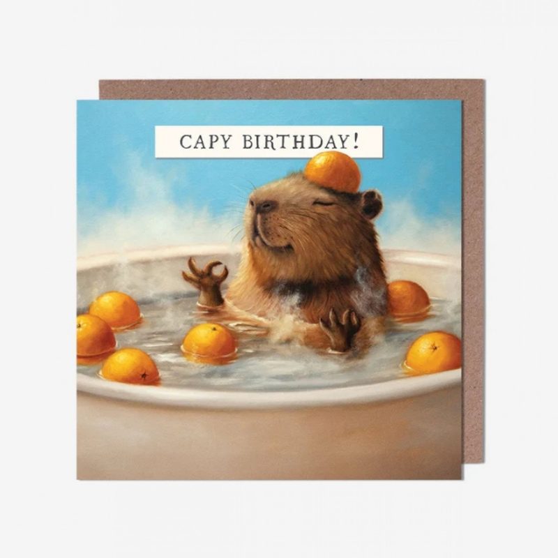 Capybara Bathing In Oranges Birthday Card