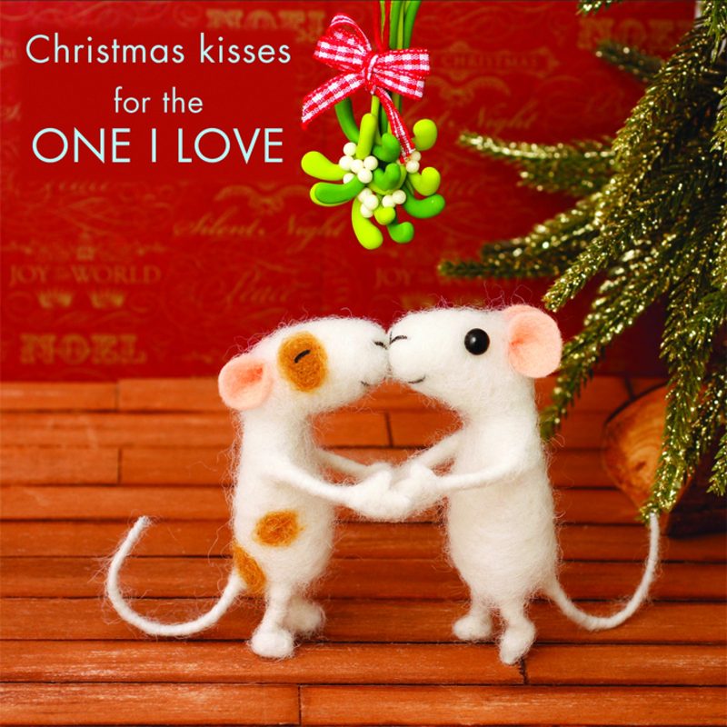 Christmas Kisses For the ONE I Love- Mice Kissing under the mistletoe