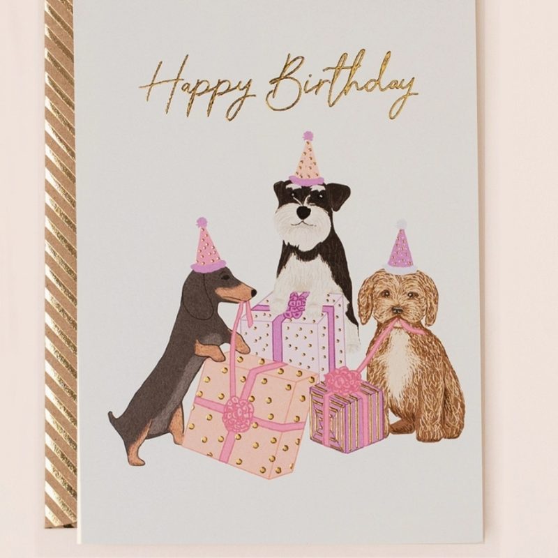 Happy Birthday Dogs and Presents - Gold Foiled Apple & Clover Card