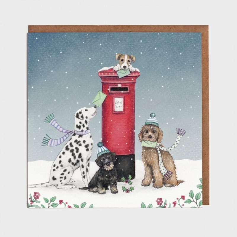 Dogs around Postbox Christmas Card by Lottie Murphy