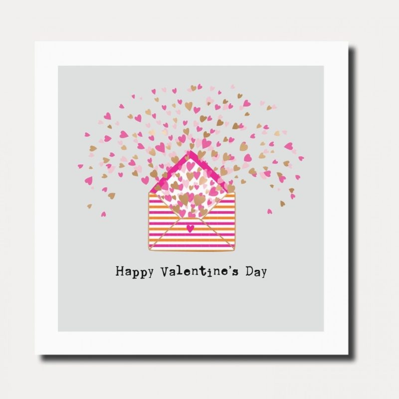 Envelope bursting with hearts Valentines Card by Marina B with foil detail, printed on premium 350 gsm board for a high-quality feel.