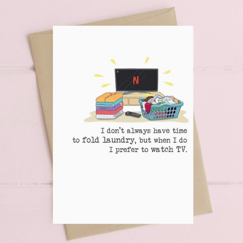 I don't always have time to fold laundry, but when I do I prefer to watch TV. Card by Dandelion Stationery.