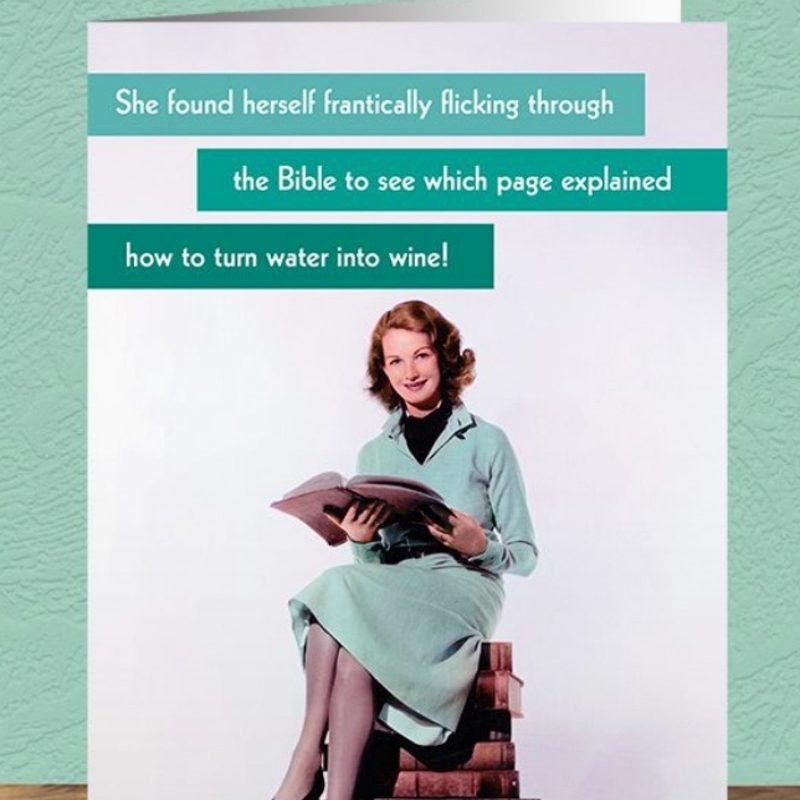 She found herself frantically flicking through Bible to see which page explained how to turn water into wine