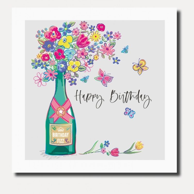 Happy Birthday Flowers and Fizz, Card by Marina B