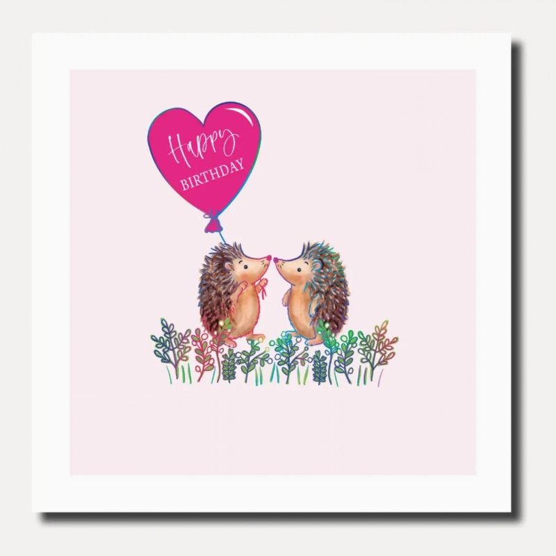 Hedgehog with Hart Balloon, Birthday Card by Marina B