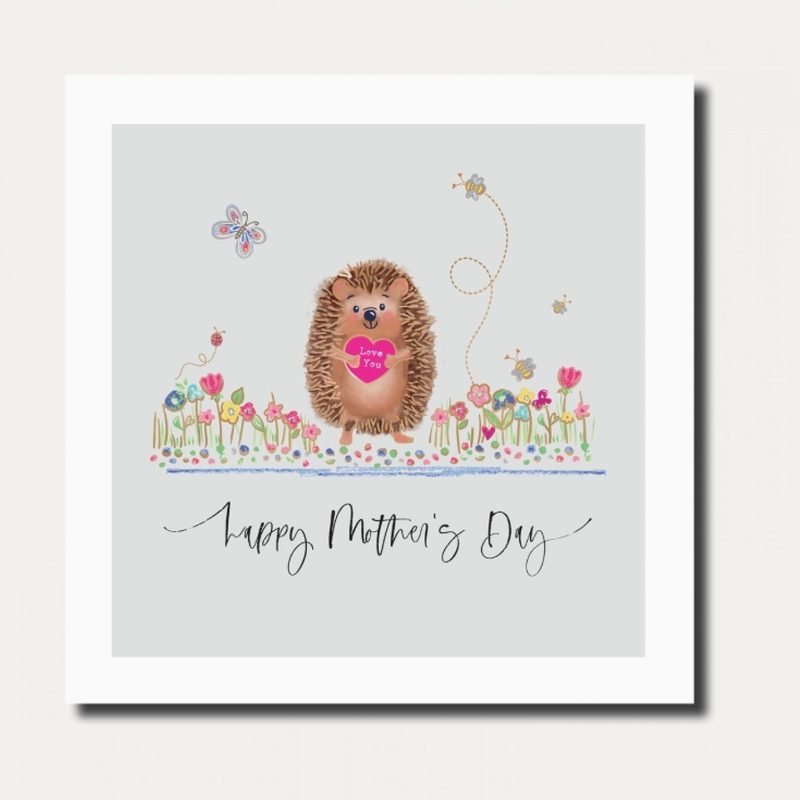 Hedgehog with Love You Heart Mother's Day Card by Marina B with foil detail, printed on premium 350 gsm board for a high-quality feel.