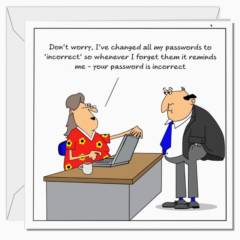 Don't worry, I've changed all my passwords to "incorrect" so whenever I forget them it reminds me your password in incorrect.