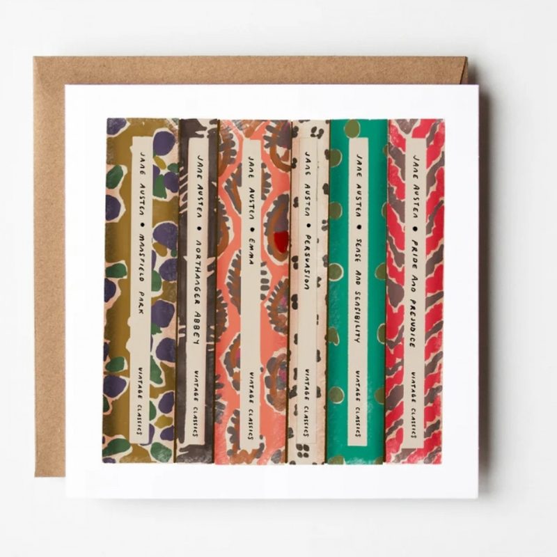 Jane Austen illustrated vintage book spines on this card by Design Smith Studio.