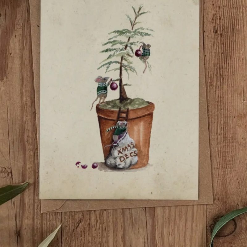 Let's Decorate the Tree, Mice - Christmas Card by Brooke Marie