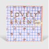Supplied with a printed cream and pink striped envelope.