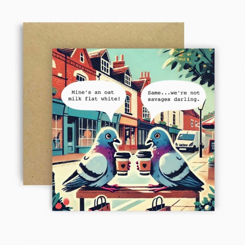 Mine's An Oat Milk Flat White Darling! Pigeon Funny Card