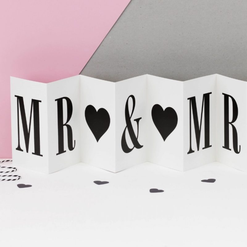 Opens out to read 'MR AND MRS' with cute love hearts.