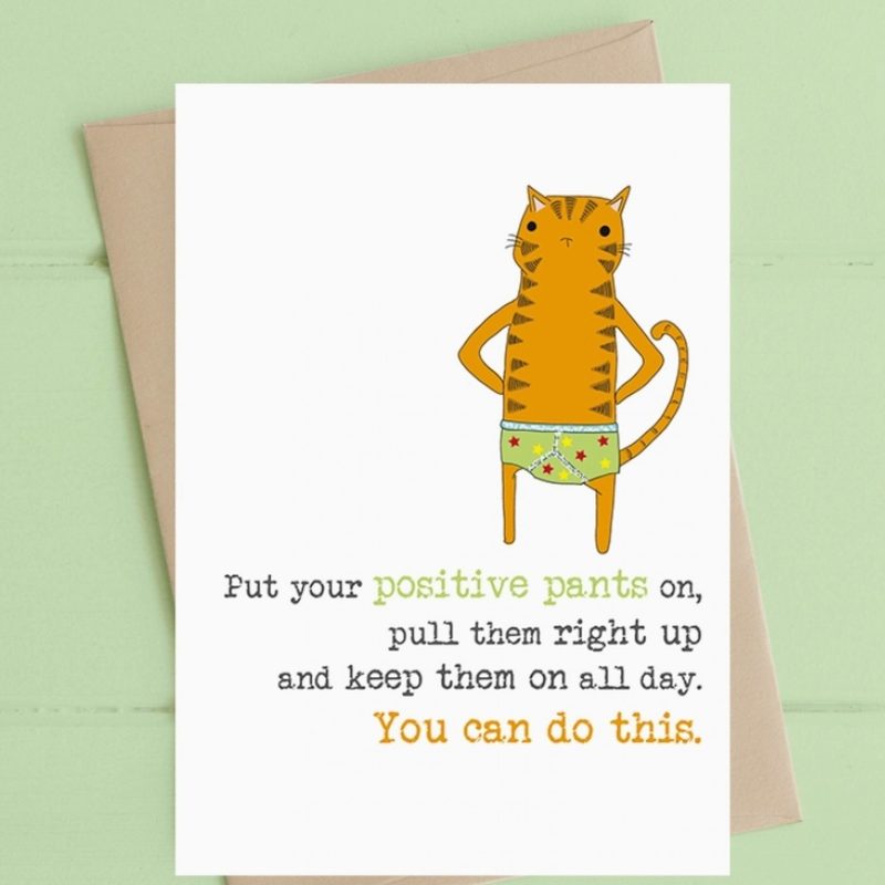 Put your positive pants on, pull them right up and keep them on all day. You can do this. Card by Dandelion Stationery.