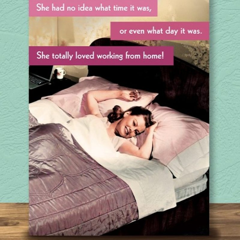 She had no idea what time it was, or even what day it was. She totally loved working from home!