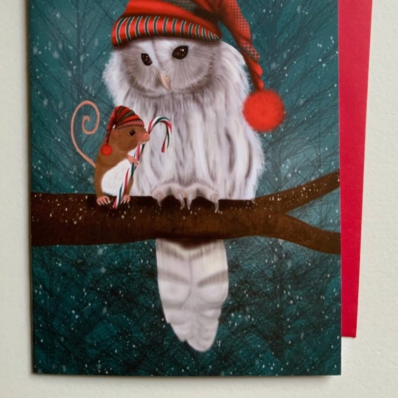 Silent Night, Owl - Christmas Greetings Card by Crimson Finch