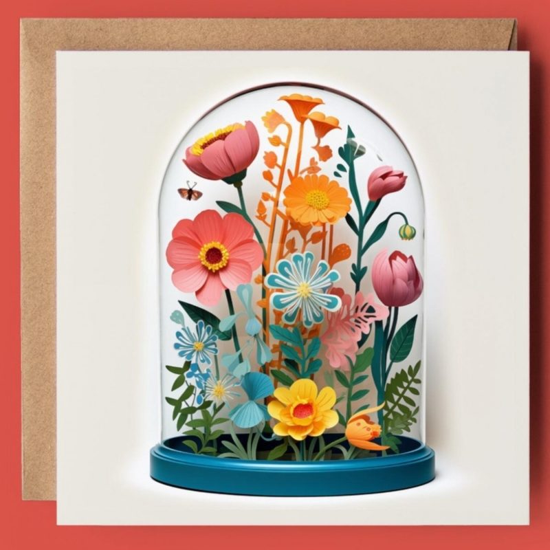 Spring Flowers Bell Jar 2D Printed Card by Good Post Day