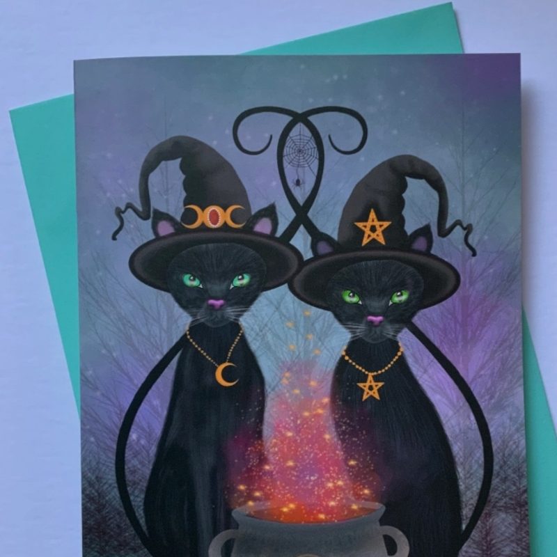 Twisted Twins - Cats Greetings Card by Crimson Finch