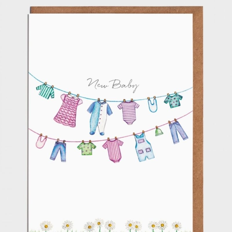 This Illustrated Washing Line New Baby greetings card is by Lottie Murphy,